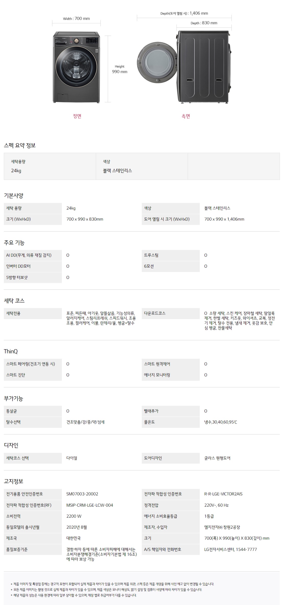 [LG전자/F24KDGD] 드럼 세탁기 / 세탁용량 : 24kg