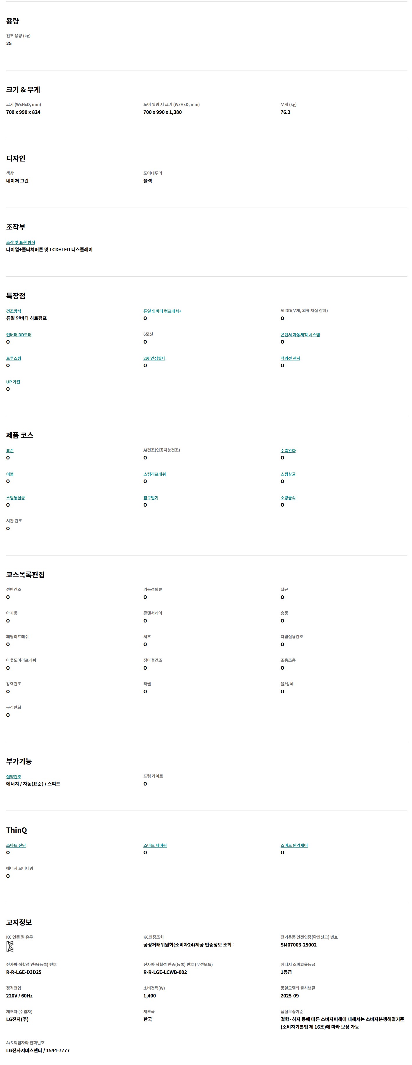 홈 세탁기/생활가전 세탁기/건조기 세탁기 드럼세탁기 리뷰 건 [LG전자/RD25GS] 트롬 AI 오브제컬렉션 25KG 건조기 네이처 그린 상품번호 S6295559 1 / 1 할인가 2,200,000원 2,440,000원 최대혜택가 16% 2,056,000원 혜택 모두보기 배송비 무료배송 카드혜택 카드사별 무이자 혜택 > 팝업 닫기 재입고 알림을 신청 하시겠어요? 취소 재입고 알림 받기 팝업 닫기 재입고 알림이 신청 되었습니다. * 30일 후 자동 해제 * 마이랜드 재입고 알림 내역에서 확인 가능 확인 팝업 닫기 재입고 알림을 해제 하시겠어요? * 미입고시 2025-06-20 자동 해제 취소 지금 해제하기 팝업 닫기 재입고 알림이 해제 되었습니다. 확인 쿠폰받기 팝업 닫기 다운로드 받은 쿠폰은 마이랜드>쿠폰에서 확인가능합니다. 최소구매금액과 할인액을 확인하세요. 일부 쿠폰은 조기소진 될 수 있습니다. 쿠폰별 발급수량은 ID당 1개입니다. APP에서 구매하면 1% 추가 적립 선한청소 옵션추가도움말 선택안함 건조기 (세미)클리닝서비스(연동구매특가) 74,000원 선한청소 팝업 닫기 선한청소 에어컨클리닝 세탁기클리닝 본품 : 수량 감소 수량 증가 2,200,000원 총 상품금액 2,200,000원 생활파워케어 포함가 생활파손케어 포함가 선한청소 A옵션 포함가 구매하기 장바구니 렌탈기간 렌탈료 월 원 제휴카드 렌탈료 도움말 제휴카드 렌탈료 LOCA X BS RENTAL 롯데카드 전월 30만원 이상 사용 ▶ 월 10,000원 할인 전월 70만원 이상 사용 ▶ 월 15,000원 할인 전월 150만원 이상 사용 ▶ 월 25,000원 할인 BS ON 플러스하나카드 전월 30만원 이상 사용 ▶ 월 13,000원 할인 전월 120만원 이상 사용 ▶ 월 23,000원 할인 ※ 결제 시 제휴카드 신규 발급도 가능하며, 발급이 완료되면 월렌탈료 할인이 가능합니다. 월 원 ※ 총 렌탈료에는 렌탈수수료가 포함되어 일반상품 가격과 차이가 있습니다. ※ 렌탈 시 전자랜드 쇼핑몰의 할인혜택(쿠폰,상품권,e.POINT 등) 및 카드혜택은 적용되지 않습니다. 렌탈하기 장바구니 팝업 닫기 렌탈 서비스 안내 왜 렌탈을 해야 하는거죠 ? 일반 구매 경우 결제 시 최대 6개월, 제휴카드 이용 시 최대 36개월 무이자 할부가 가능하지만 렌탈 구매 경우 일반카드/제휴카드 구분 없이 24,36,48,60개월 렌탈 가능. 추가로 일반 구매 시에 구매 금액 만큼 채무가 발생하게 되지만 렌탈은 당일 현장에서 결제되는 금액이 없이 약정기간 동안 월 렌탈료만 청구가 되므로 채무 발생이 없어 고객 개인 신용에도 영향 없이 구매가 가능합니다. 렌탈 계약 이후 해지가 가능한가요? 제품 설치(인도) 전에는 계약 해지가 가능합니다. (고객 접수하신 전자랜드 대리점에 문의) 설치 완료 후에는 해지 가능하나 위약금이 발생합니다. (위약금 :t잔여 렌탈료 100%) ※ 설치(인도) 완료 7일 이후 해지 문의는 렌탈사 고객센터(1588-6990)로 문의 주시면 됩니다. 렌탈 약정기간 종료 후 렌탈 제품의 소유권은 어떻게 되나요? 렌탈 약정기간 종료 시 렌탈료가 정상적으로 완납되었을 경우 렌탈 제품의 소유권은 계약자에게 이전됩니다. 완납정보는 렌탈사 BS ON 을 통해 알 수 있습니다. 법인명, 법인사업자 카드로 렌탈페이 진행이 가능한가요? 개인명의, 개인카드로만 렌탈 접수 가능합니다. 본인명의의 휴대폰으로만 렌탈 신청 가능한가요? 네. 신청자 본인명의의 휴대폰번호로 신청 가능하며, 본인명의의 카드로 신청 가능합니다.(스마트폰 으로만 신청 가능) 렌탈을 하게 되면 신용에 문제가 생기지 않나요? 렌탈사는 고객의 렌탈 가능 여부를 위해 조회만을 하기 때문에 고객의 신용에 영향을 주지 않습니다. 제휴카드 할인은 어떻게 받을 수 있나요? 이미 렌탈사 제휴카드(롯데카드,하나카드,우리카드)를 소지하신 경우, 렌탈 결제정보 입력 시 해당 카드 정보를 입력하시면 할인이 가능하며, 제휴카드가 없으신 경우 렌탈 결제정보 입력 시 제휴카드 신규 발급을 요청하시면 발급 완료 후 할인이 가능합니다. 렌탈료 자동납부 신청방법 렌탈사 고객센터(1588-6990)를 통해 제휴카드로 자동납부 신청 바랍니다.각 카드사에 렌탈료가 청구되는 시점부터 할인 혜택이 적용됩니다. 렌탈 제품 주문 후 취소 또는 교환/반품을 하면 어떻게 되나요? 취소 : 제품이 배송되기 전 취소 시 주말/공휴일을 제외하고,1~3일 내에 취소 완료 처리됩니다. 교환/반품 : 제품이 배송/설치된 경우 교환 및 반품은 불가합니다. 단, 제품에 하자가 있는 경우 확인 후 교환 및 반품이 가능합니다. 할인 · 혜택 모두보기 팝업 닫기 정상가 2,440,000원 즉시할인 240,000원 할인가 2,200,000원 e.POINT 최대적립 i 창닫기 최대 적립 포인트는 할인가 기준으로 계산되며, 최종결제금액과 결제 조건에 따라 적립금액이 변경됩니다. 주문서에서 최종 적립혜택을 다시 한번 확인해주세요. 44,000P 기본적립 22,000P 앱 구매시 추가적립 추천 22,000P 카드혜택 하나카드 즉시할인(일반결제) 100,000원 최대 혜택가 2,056,000원 하나카드 즉시할인 유의사항 하나앱카드로 10만원 이상 결제 시 금액대별 즉시할인* 10만원 이상 결제 시 5천원 / 30만원 이상 1.5만원 / 50만원 이상 2.5만원 / 70만원 이상 3.5만원 / 100만원 이상 5만원 / 150만원이상 7.5만원 / 200만원 이상 10만원/ 250만원 이상 12.5만원 즉시