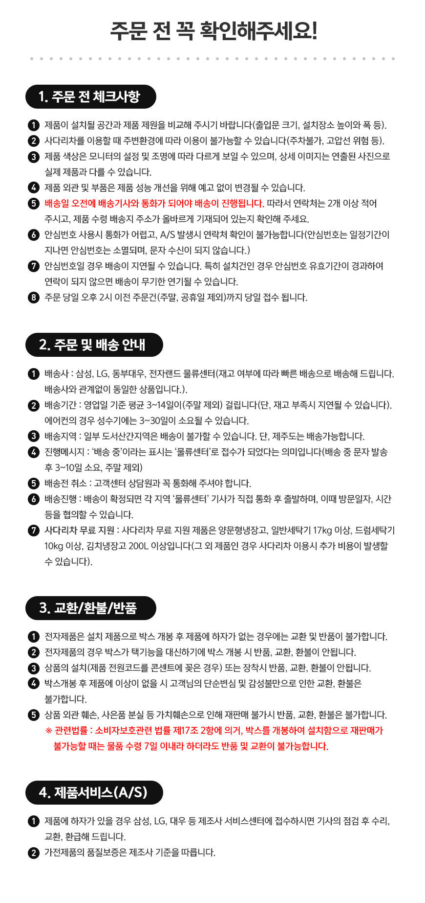 • ⑥ 대형 가전 배송 및 설치 후 단순 변심으로 인한 교환/반품인 경우