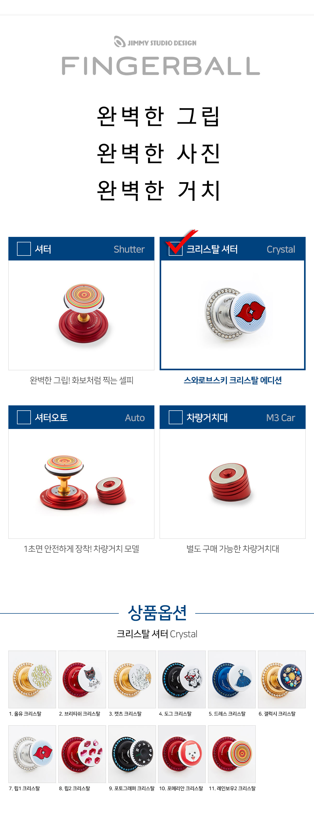 [지미스튜디오디자인/FBXS] 지미스튜디오디자인 핑거볼 셔터 크리스탈 블루투스 리모컨 핸드폰거치대