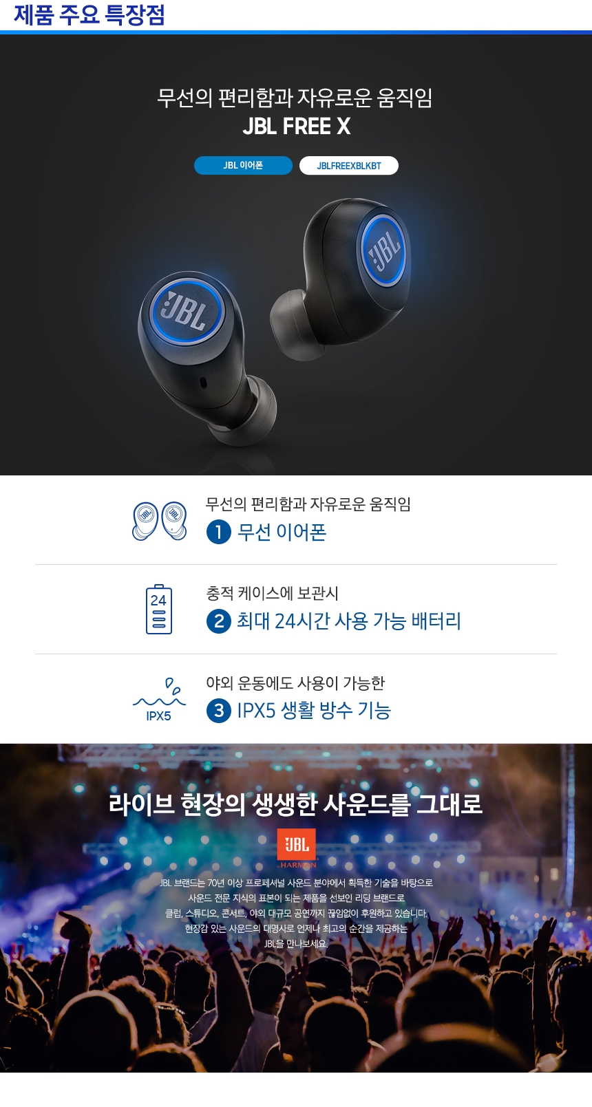 JBL FREE X 블루투스 무선 이어폰 JBLFREEXBLKBT/JBLFREEXWHTBT