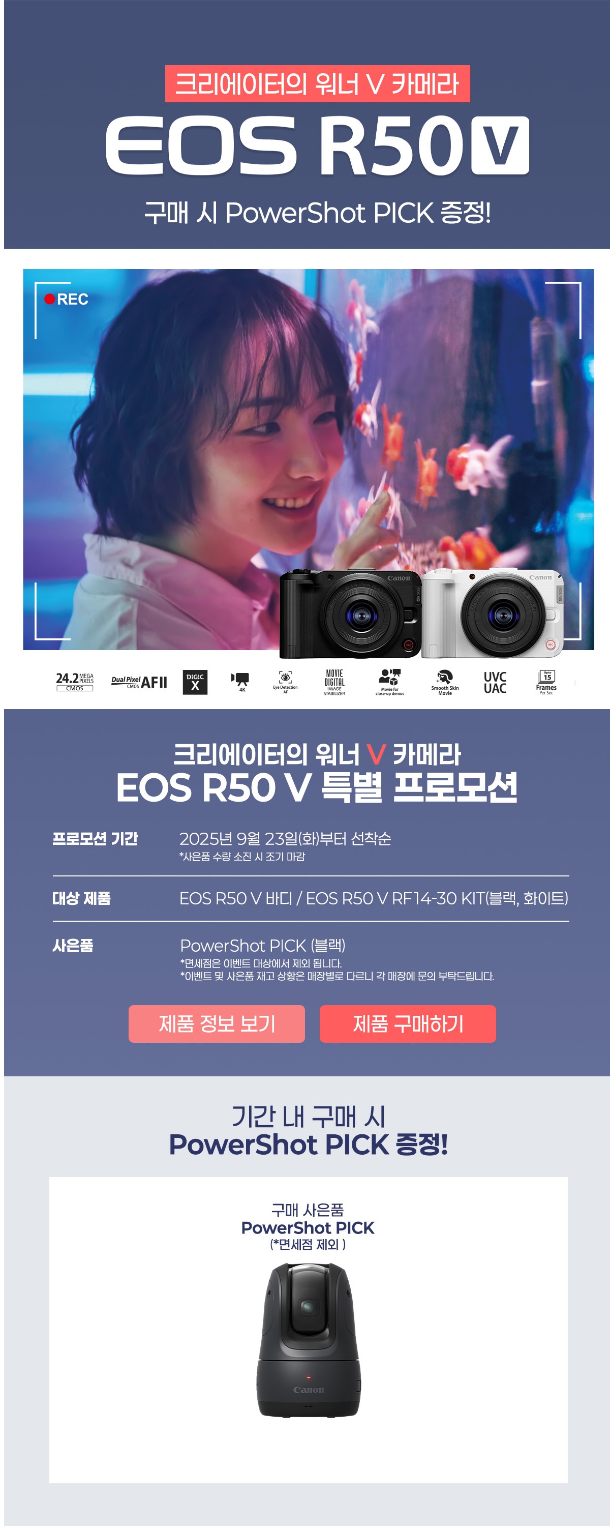 홈 스마트폰/태블릿/디지털 카메라/CCTV 미러리스 [파워샷 픽 증정] 캐논 미러리스 카메라 EOS-R50V (14-30KIT) 블랙 상품번호 S6293363 50,000원 하나카드 e.POINT 적립 12,341P 사은품 1 / 4 할인가 1,234,050원 1,299,000원 최대혜택가 10% 1,171,709원 혜택 모두보기 > 배송비 무료배송 카드혜택 카드사별 무이자 혜택 > 팝업 닫기 재입고 알림을 신청 하시겠어요? 취소 재입고 알림 받기 팝업 닫기 재입고 알림이 신청 되었습니다. * 30일 후 자동 해제 * 마이랜드 재입고 알림 내역에서 확인 가능 확인 팝업 닫기 재입고 알림을 해제 하시겠어요? * 미입고시 2025-06-20 자동 해제 취소 지금 해제하기 팝업 닫기 재입고 알림이 해제 되었습니다. 확인 쿠폰받기 팝업 닫기 다운로드 받은 쿠폰은 마이랜드>쿠폰에서 확인가능합니다. 최소구매금액과 할인액을 확인하세요. 일부 쿠폰은 조기소진 될 수 있습니다. 쿠폰별 발급수량은 ID당 1개입니다. APP에서 구매하면 1% 추가 적립 본품 : 수량 감소 수량 증가 1,234,050원 총 상품금액 1,234,050원 생활파워케어 포함가 생활파손케어 포함가 구매하기 장바구니 할인 · 혜택 모두보기 팝업 닫기 정상가 1,299,000원 즉시할인 64,950원 할인가 1,234,050원 e.POINT 적립 기본적립 12,341P 12,341P 카드혜택 하나카드 즉시할인(일반결제) 50,000원 최대 혜택가 1,171,709원 하나카드 즉시할인 유의사항 하나앱카드로 10만원 이상 결제 시 금액대별 즉시할인* 10만원 이상 결제 시 5천원 / 30만원 이상 1.5만원 / 50만원 이상 2.5만원 / 70만원 이상 3.5만원 / 100만원 이상 5만원 / 150만원이상 7.5만원 / 200만원 이상 10만원/ 250만원 이상 12.5만원 즉시할인* 적용제외대상: 법인/선불/기프트/하나BC 등 일부카드 및 간편결제수단, 전자랜드페이 결제건 제외* 비회원/기업회원 결제건 제외* 최종 카드결제금액 기준으로 혜택이 적용* 예산 소진 시 별도 공지없이 종료될 수 있음* 즉시할인이 적용된 실 결제금액은 카드사 승인금액으로 확인가능 * 주문취소 또는 부분취소로 인해 할인 조건에 부합하지 않을 경우, 적용된 할인금액은 환불금액에서 차감 e.POINT 적립 적립금액기준 - 기본적립: 최종결제금액의 1% - APP적립: 최종결제금액의 1% - 행사/ 상품적립: 조건에 따라 변동 구매확정 후 자동 적립되며 일부 상품에 대해 적립이 제외될 수 있습니다. 사용기간은 적립일 기준 3년 후 말일까지입니다. 소멸일 이후 주문취소 시 복원되지 않습니다. 온라인쇼핑몰에서만 사용 가능한 포인트로 1P부터 사용 가능합니다. 최종결제 금액에 따라 적립되는 e.POINT가 변동 될 수 있습니다. 쿠폰, 포인트, e.POINT 등 할인 금액은 최종결제금액에서 제외됩니다. 카드 무이자 할부 팝업 닫기 10월 무이자 혜택안내 BC카드 5만원 이상 2,3,4,5 개월 무이자 할부 국민카드 5만원 이상 2,3,4,5 개월 무이자 할부 롯데카드 5만원 이상 2,3,4,5 개월 무이자 할부 전자랜드 롯데카드 5만원 이상 2,3,4,5 개월 무이자 할부 삼성카드 5만원 이상 2,3,4,5 개월 무이자 할부 신한카드 5만원 이상 2,3,4,5 개월 무이자 할부 외환카드 5만원 이상 2,3,4,5 개월 무이자 할부 현대카드 5만원 이상 2,3 개월 무이자 할부 하나카드 5만원 이상 2,3,4 개월 무이자 할부 농협카드 5만원 이상 2,3,4,5,6 개월 무이자 할부 전자랜드 스페셜 롯데카드 5만원 이상 2,3,4,5 개월 무이자 할부 우리카드 5만원 이상 2,3,4,5 개월 무이자 할부 10월 부분무이자 / 특별무이자 혜택안내 BC카드 5만원 이상 10,12개월 부분무이자 할부 10개월 부분무이자 (1~4회차 이자 고객부담) 12개월 부분무이자 (1~5회차 이자 고객부담) 국민카드 5만원 이상 6,10개월 부분무이자 할부 6개월 부분무이자 (1~3회차 이자 고객부담) 10개월 부분무이자 (1~5회차 이자 고객부담) 삼성카드 5만원 이상 7,11개월 부분무이자 할부 7개월 부분무이자 (1~3회차 이자 고객부담) 11개월 부분무이자 (1~5회차 이자 고객부담) 신한카드 5만원 이상 7,9,11개월 부분무이자 할부 7개월 부분무이자 (1~3회차 이자 고객부담) 9개월 부분무이자 (1~4회차 이자 고객부담) 11개월 부분무이자 (1~5회차 이자 고객부담) 현대카드 5만원 이상 10,12개월 부분무이자 할부 10개월 부분무이자 (1~5회차 이자 고객부담) 12개월 부분무이자 (1~6회차 이자 고객부담) 하나카드 5만원 이상 6,10,12개월 부분무이자 할부 6개월 부분무이자 (1~3회차 이자 고객부담) 10개월 부분무이자 (1~4회차 이자 고객부담) 12개월 부분무이자 (1~5회차 이자 고객부담) 농협카드 5만원 이상 7,8,9,10,12,24개월 부분무이자 할부 7개월 부분무이자 (1~3회차 이자 고객부담) 8개월 부분무이자 (1~3회차 이자 고객부담) 9개월 부분무이자 (1~3회차 이자 고객부담) 10개월 부분무이자 (1~3회차 이자 고객부담) 12개월 부분무이자 (1~4회차 이자 고객부담) 24개월 부분무이자 (1~6회차 이자 고객부담) 전북은행카드 5만원 이상 4,5,6,7,8,9,10,11,12개월 부분무이자 할부 4개월 부분무이자 (1회차 이자 고객부담) 5개월 부분무이자 (1회차 이자 고객부담) 6개월 부분무이자 (1회차 이자 고객부담) 7개월 부분무이자 (1회차 이자 고객부담) 8개월 부분무이자 (1회차 이자 고객부담) 9개월 부분무이자 (1회차 이자 고객부담) 10개월 부분무이자 (1~2회차 이자 고객부담) 11개월 부분무이자 (1~2회