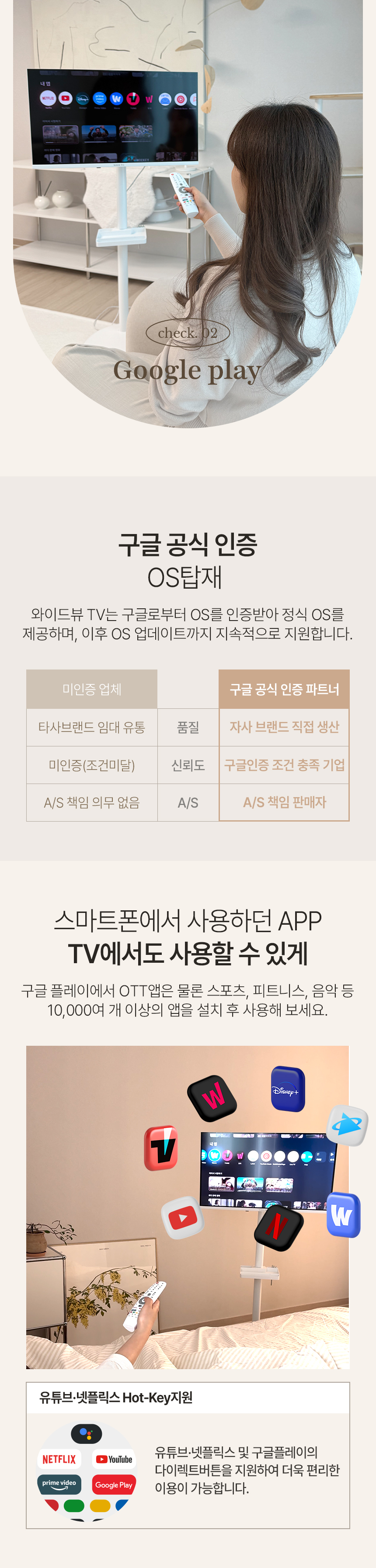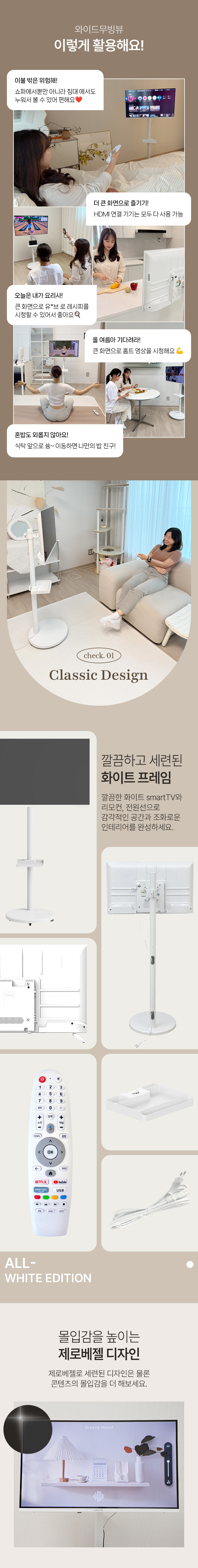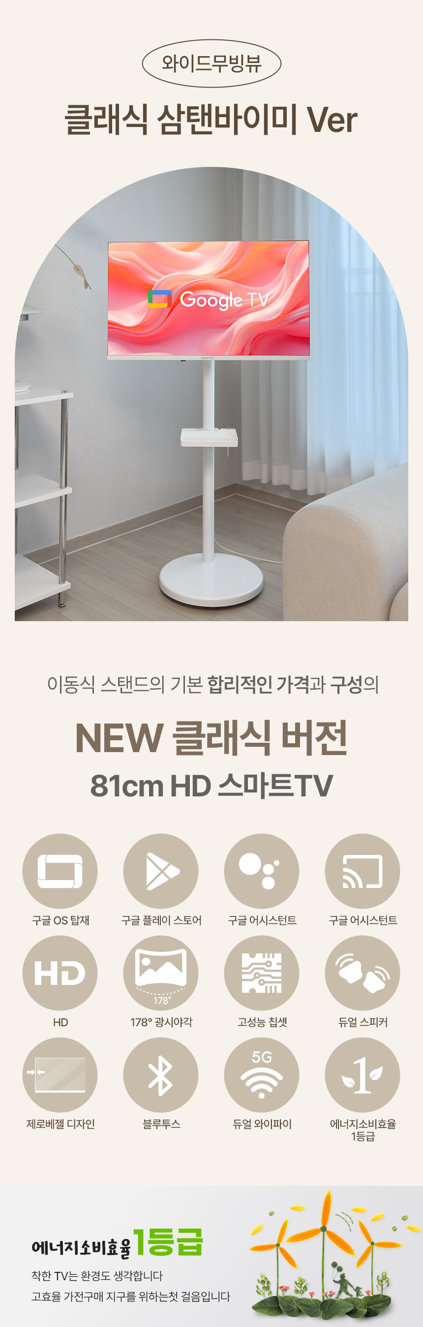 와이드무빙뷰 화이트에디션 81cm(32인치) 구글 HD 스마트TV 클래식 이동식 스탠드 중소바이미 삼탠바이미