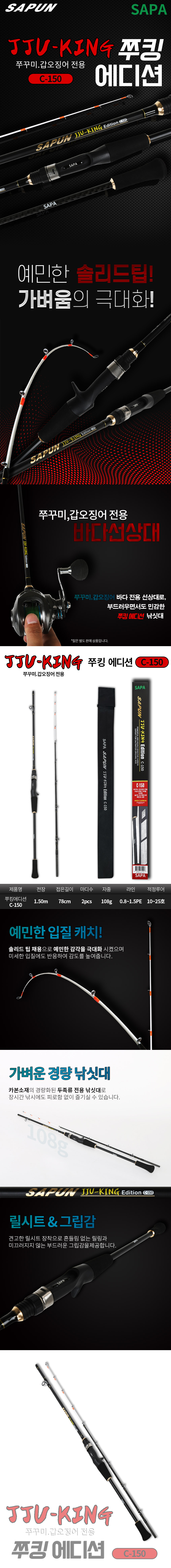 싸파 쭈킹 에디션 C-150 쭈꾸미 갑오징어 낚시 대 선상 루어 한치