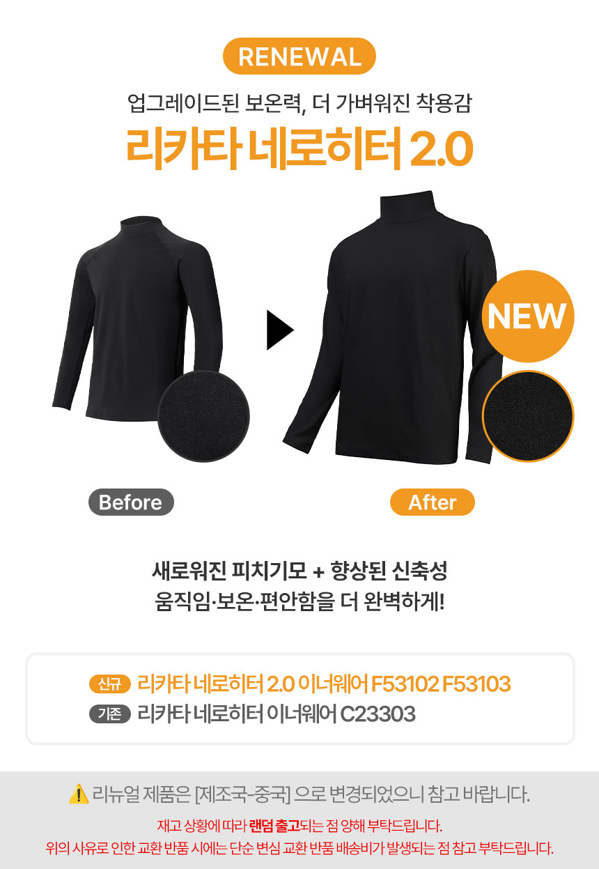 2세트/ 리카타 네로히터 방한 남성 여성 상하의 스포츠 골프 기능성 이너웨어 C23303