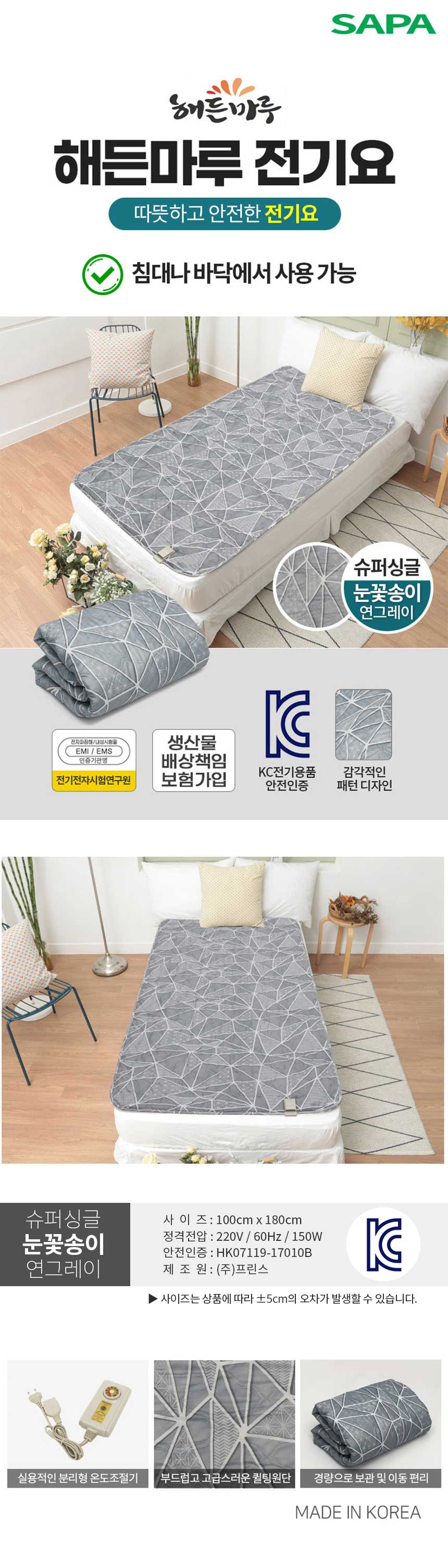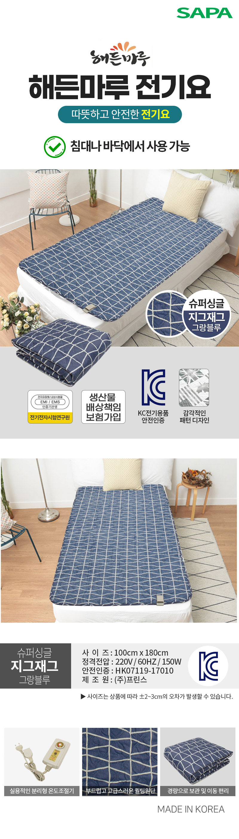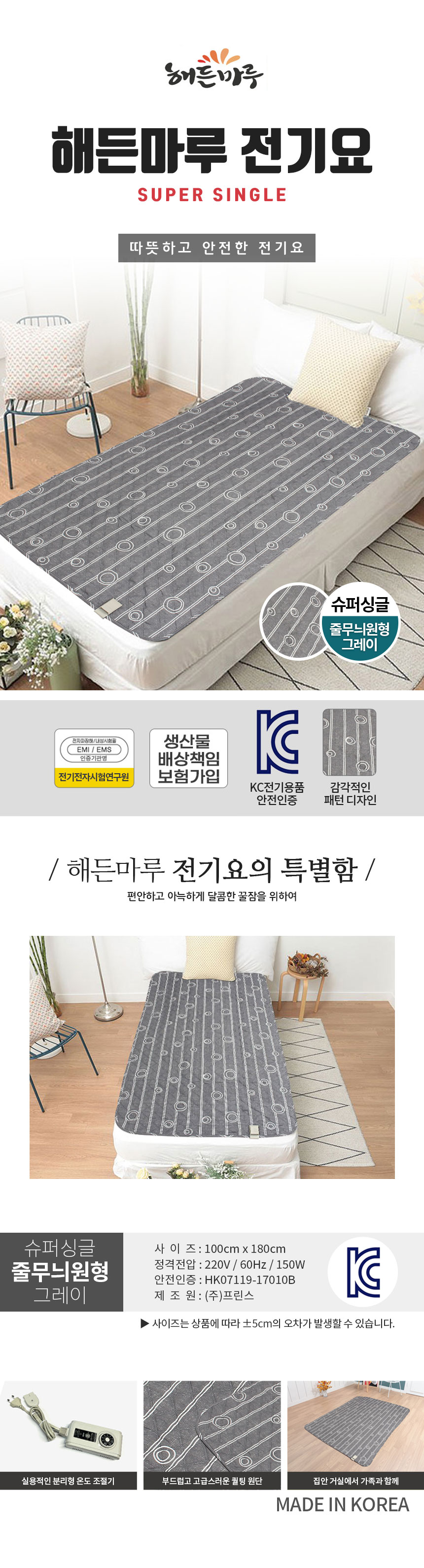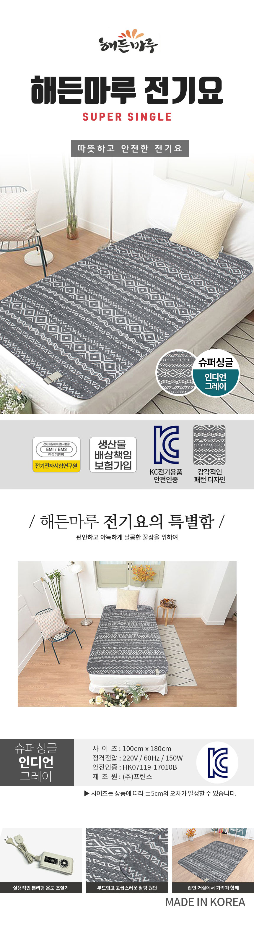 해든마루 전기요 슈퍼싱글 1인용 선택형 워셔블 매트