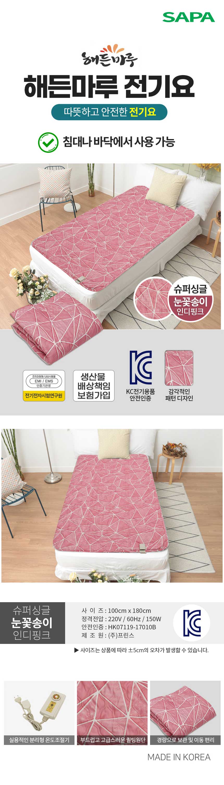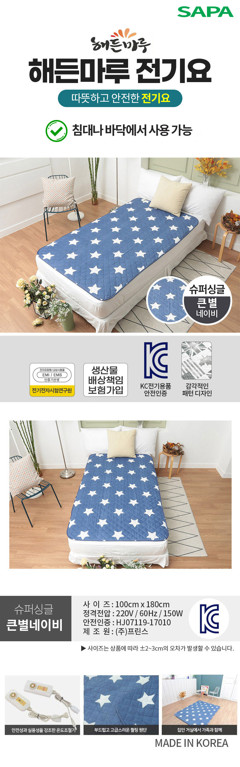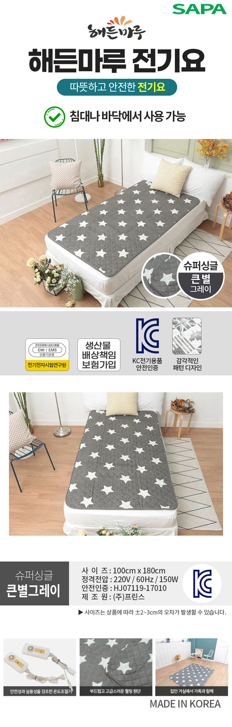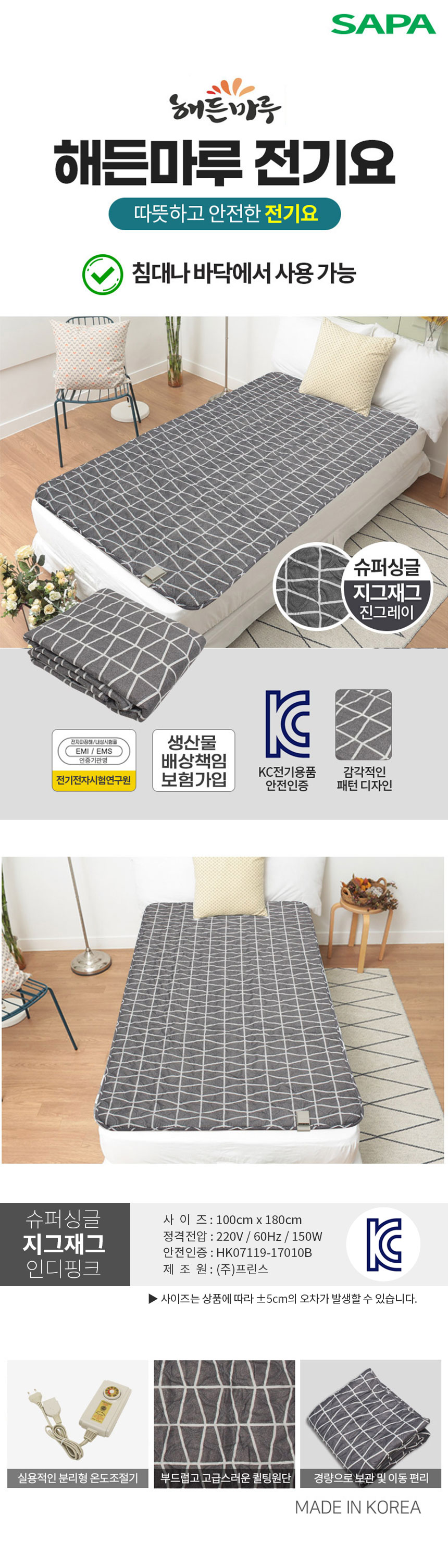 해든마루 전기요 슈퍼싱글 1인용 선택형 워셔블 매트