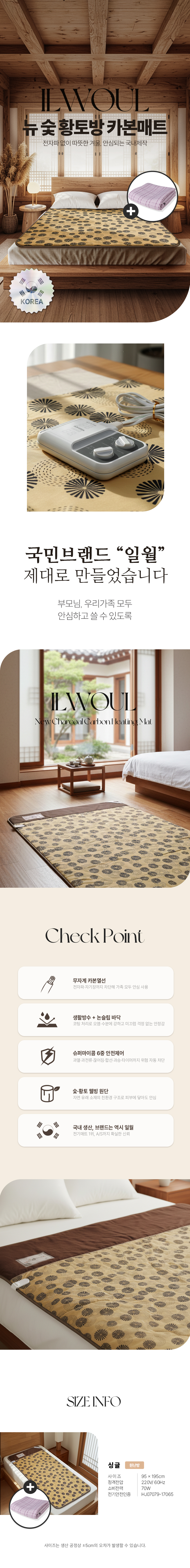 일월정품  뉴 숯 황토 방 전기 매트 싱글+커버 온열 보료 장판