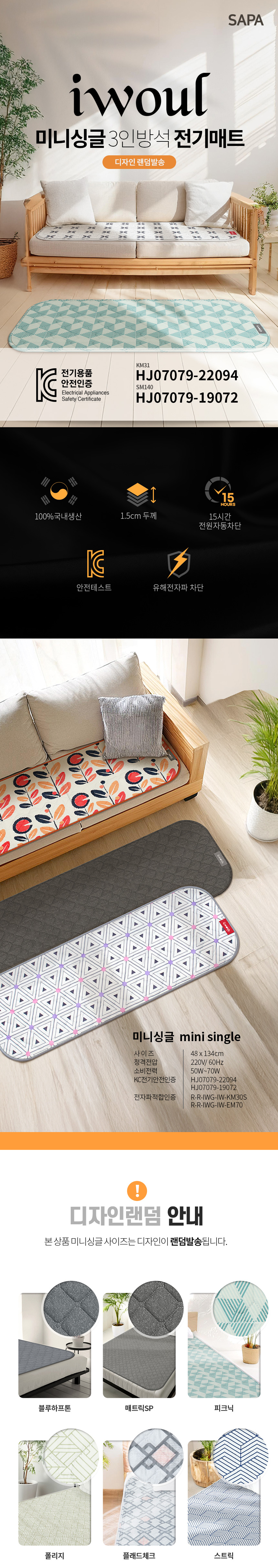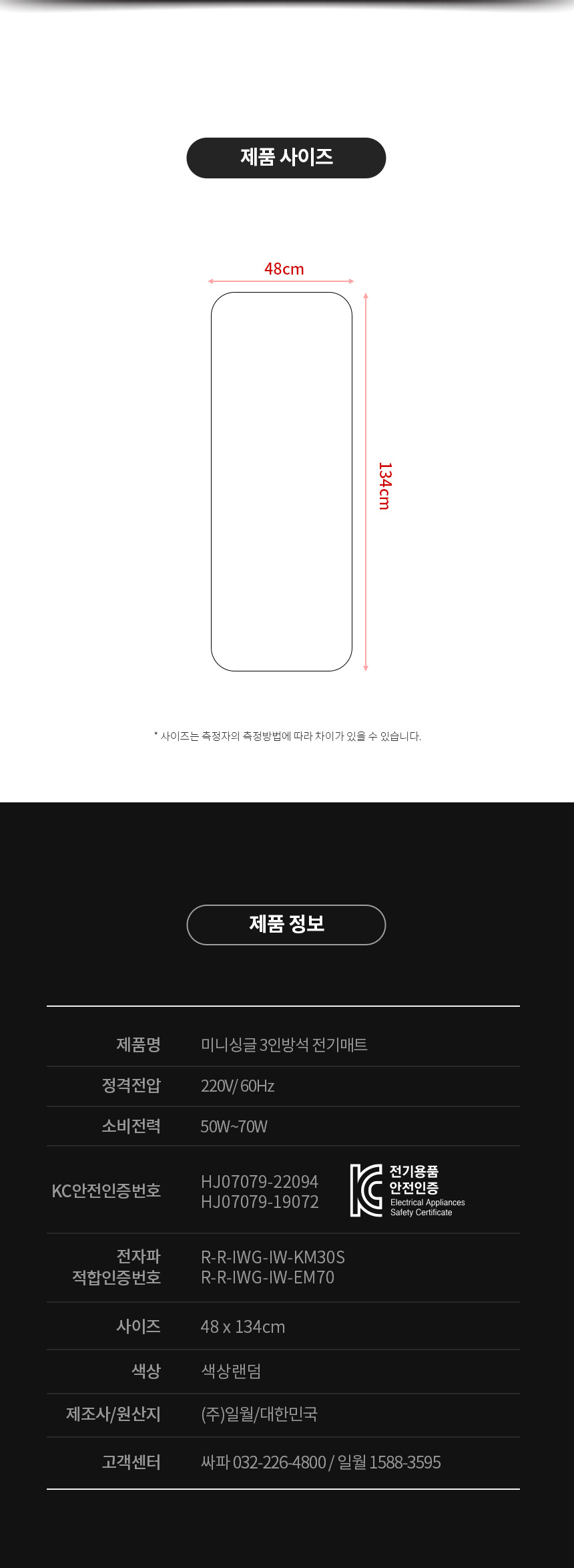 일월 미니 싱글 매트 천소재 3인용 전기 방석 장판 보료 요