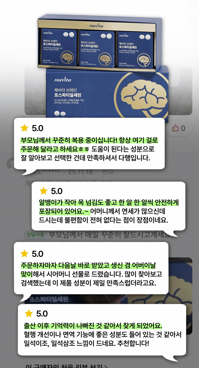 60캡슐 2박스 2개월분 /해비타 브레인 포스파티딜세린 500mg
