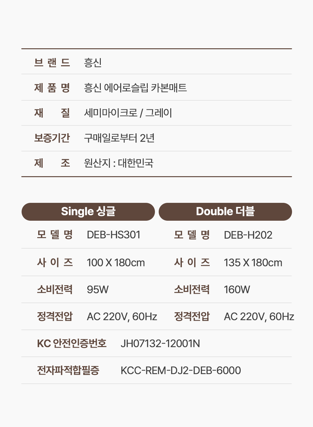 흥신 초절전 탄소매트 국산 카본 온열 캠핑 전기장판 더블 145CM X 180CM