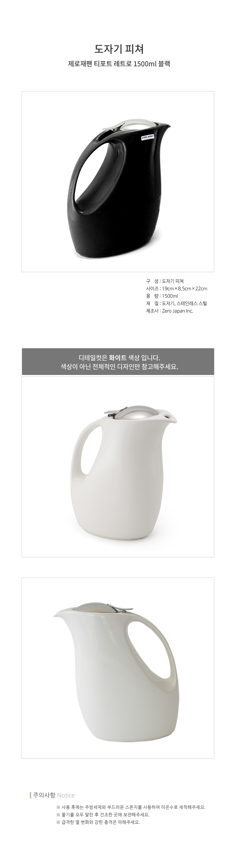 제로재팬 티포트 레트로 1,500ml 블랙 (BBN-13BK) 도자기 티팟세트