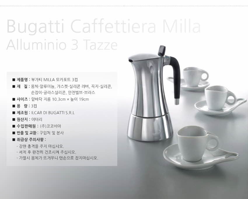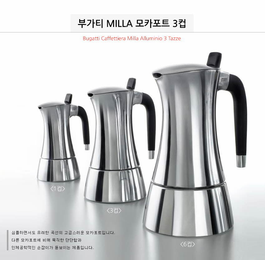 부가티 MILLA 커피메이커 모카포트 3컵 에스프레소 추출기