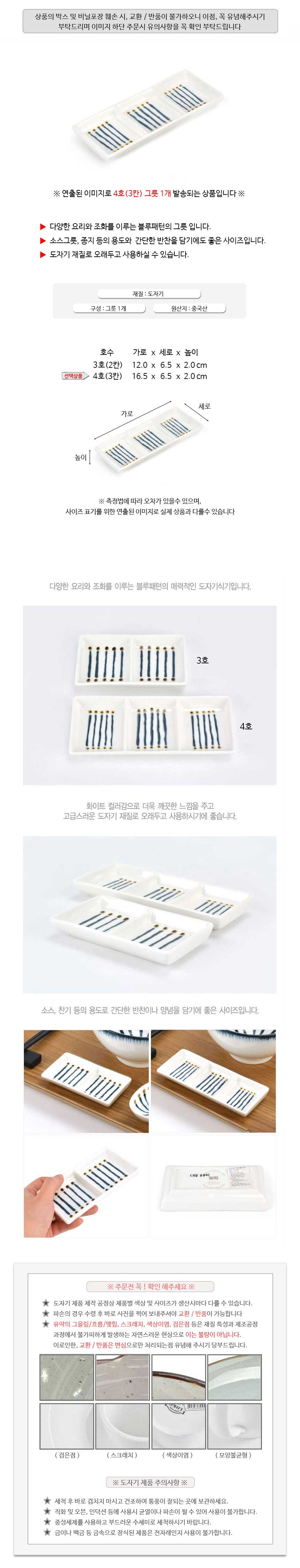 상품명:일식 도자기 3칸 종지 반찬 나눔 접시 16.5x6.5cm 4호
