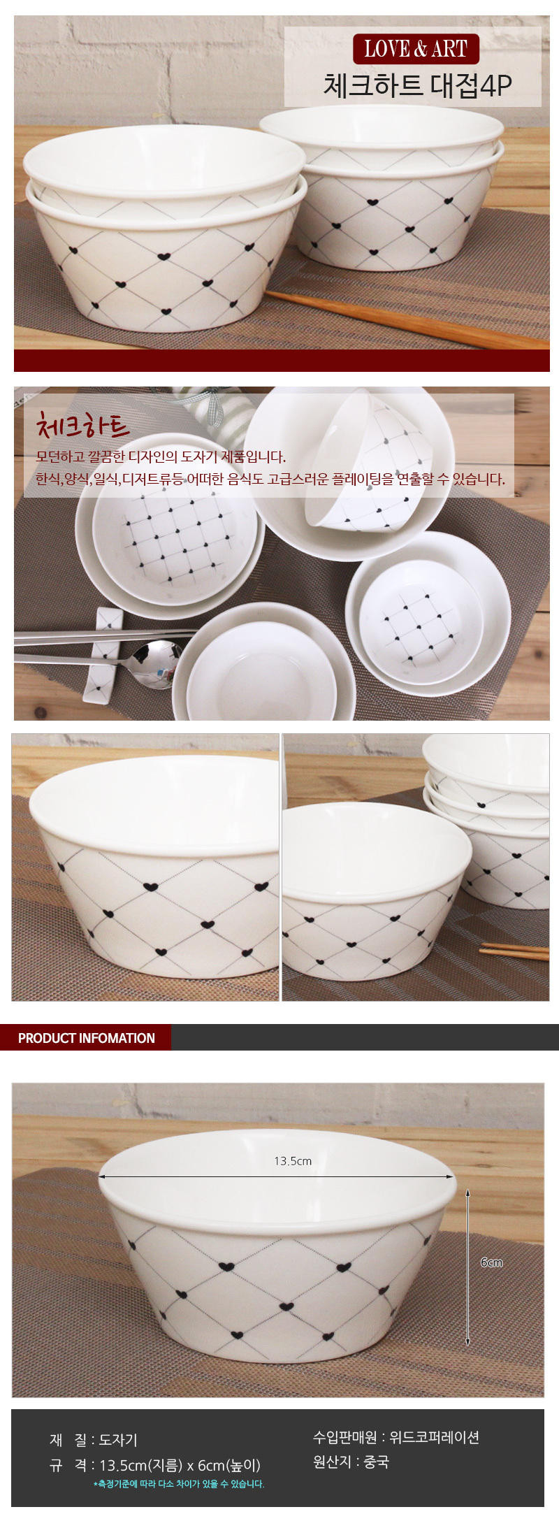 상품명:체크패턴 대접 4p 공기 대접 밥그릇 국그릇 도가지그릇