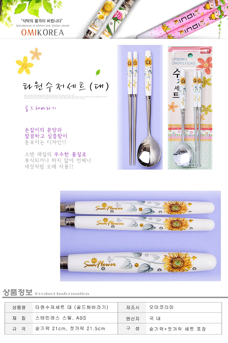상품명:해바라기 타원 스텐 수저세트 2P 숟가락 젓가락 셋트