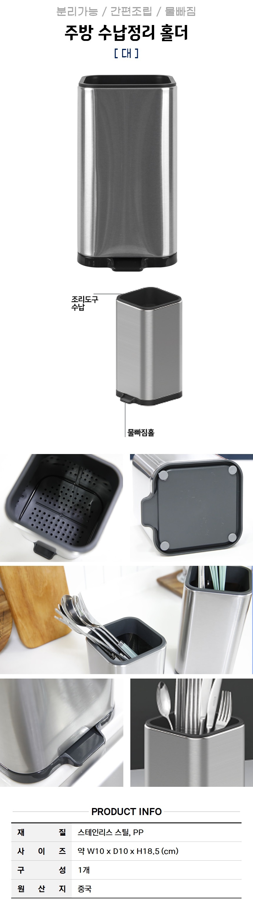 상품명:주방용 수납 홀더-대 수저통 다용도통 물빠짐