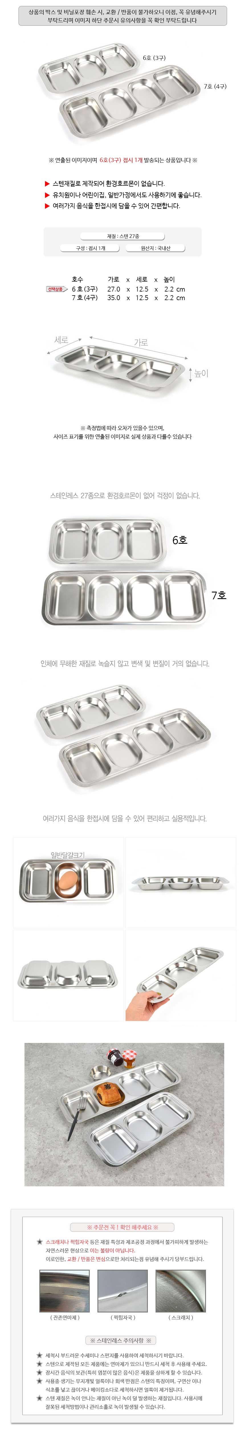 상품명:3구 스텐 27종 어린이 반찬 간식 접시 27x12.5cm 6호
