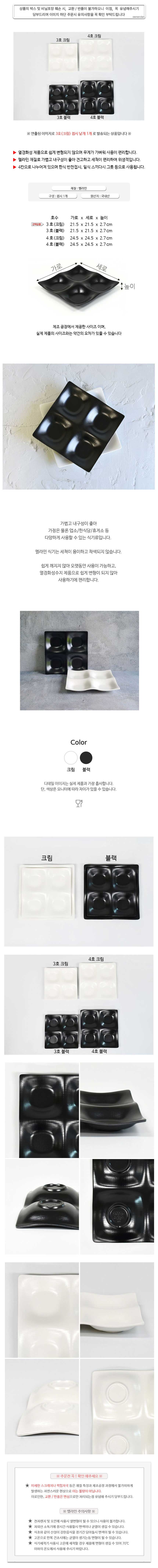 상품명:멜라민 4칸 찬기 반찬그릇 나눔접시 21.5cm 3호 크림