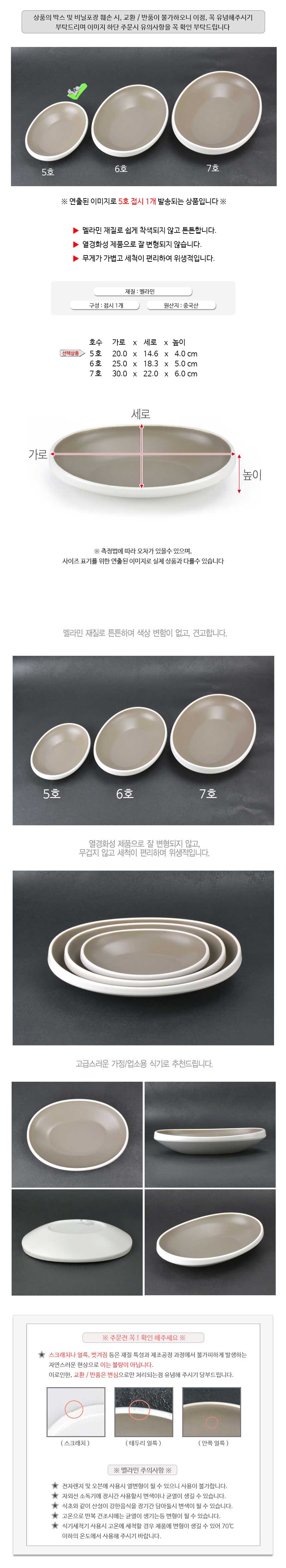 상품명:멜라민 타원 한식 찬기 반찬그릇 반찬접시 20cm 5호