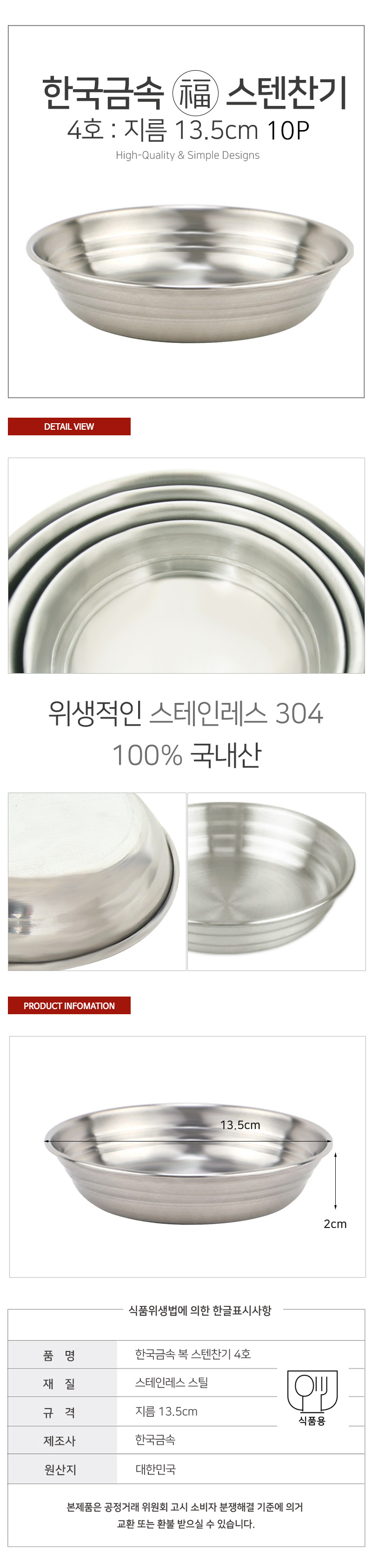 상품명:업소용 스텐 찬기 4호 13.5cm 10P 식당 반찬 접시