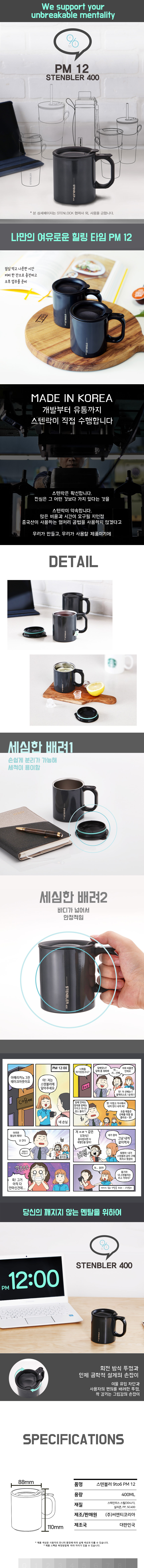스텐뚜껑머그컵 400ml 1p 손잡이 뚜껑 블랙 스텐블러