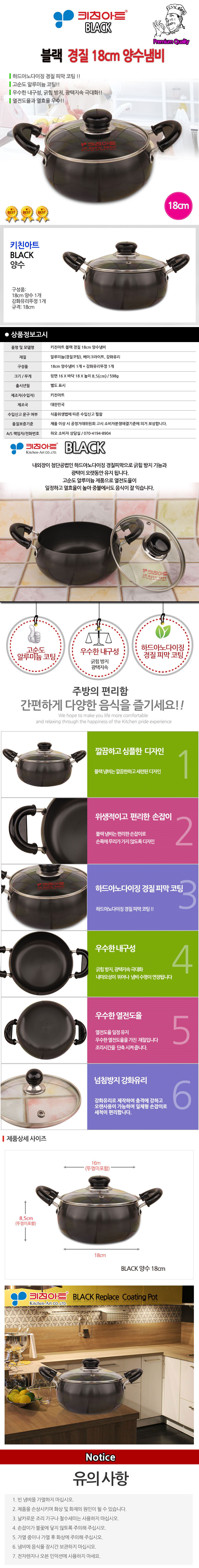 상품명:키친아트 쥬노블랙 경질냄비 18cm 양수