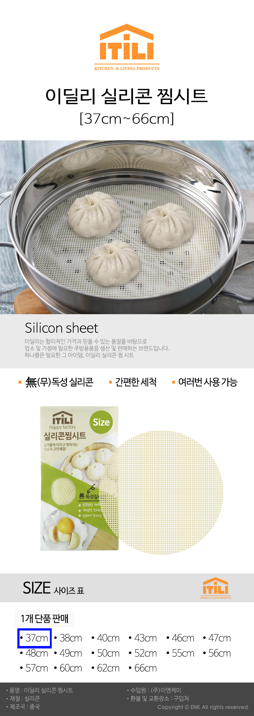 상품명:이딜리 찜판 실리콘 찜시트 만두판 찜깔판 깔개 37cm