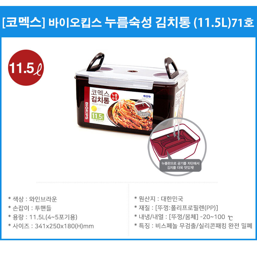 상품명:(코멕스)바이오킵스김치통 누름숙성 투핸들11.5L(71호