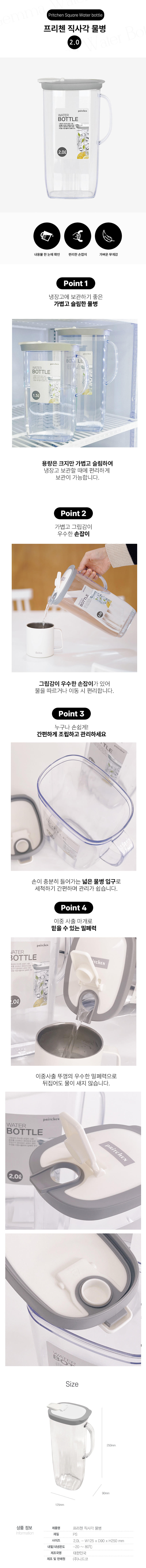 상품명:프리첸 직사각 물병 2.0L 1P 물통 125x90x250mm 1P