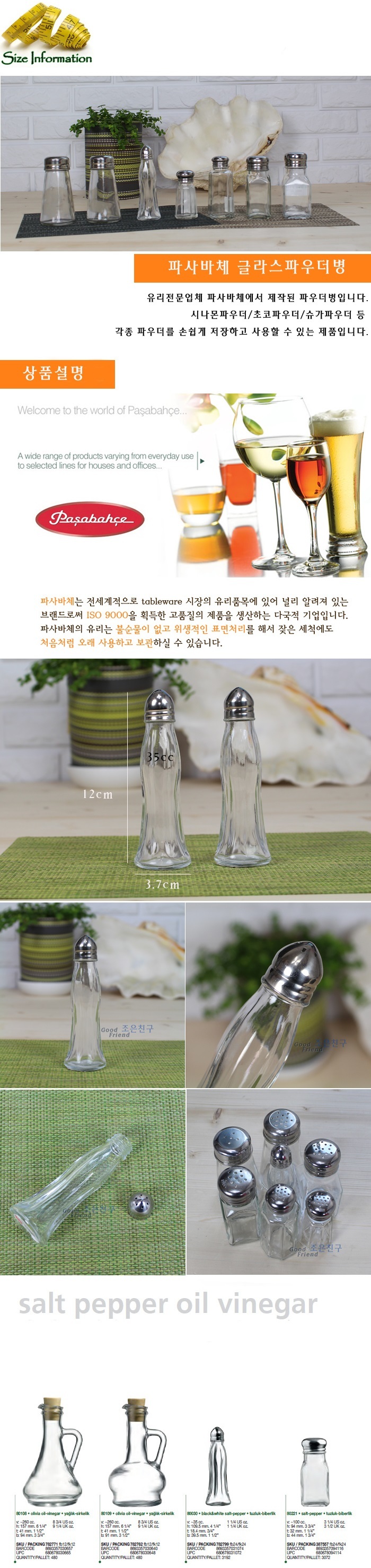 상품명:파사바체 유리 소금 후추병 초코렛 시나몬파우더병