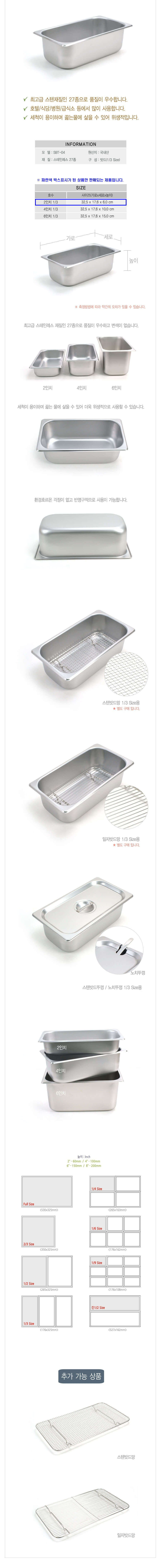 스텐 밧드 트레이 업소 반찬통 받드 밧트 셋 1/3 2in