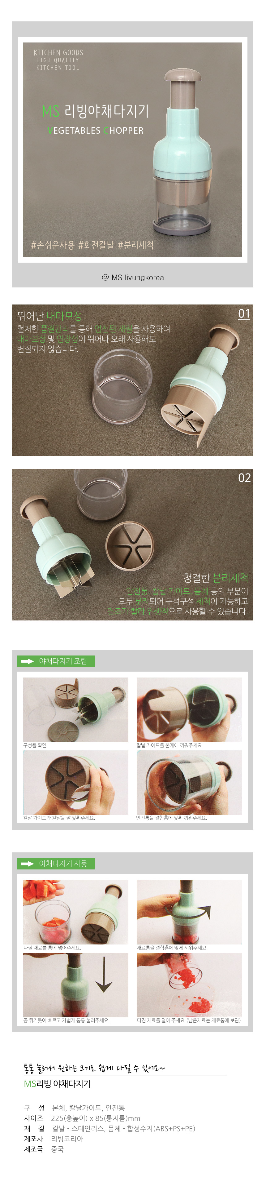 상품명:분리세척 수동 야채다지기 1P 채소 채썰기 채칼 강판