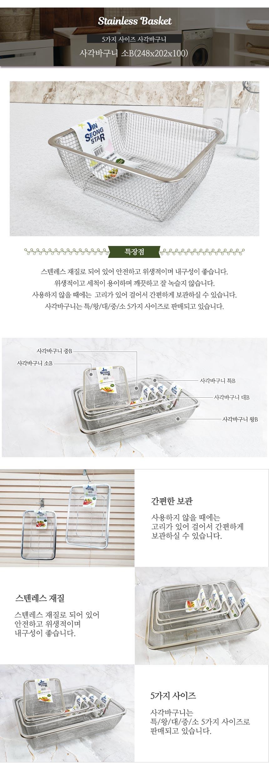 스텐 사각바구니 소 B형 굵은망 야채소쿠리 채반