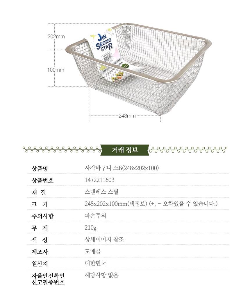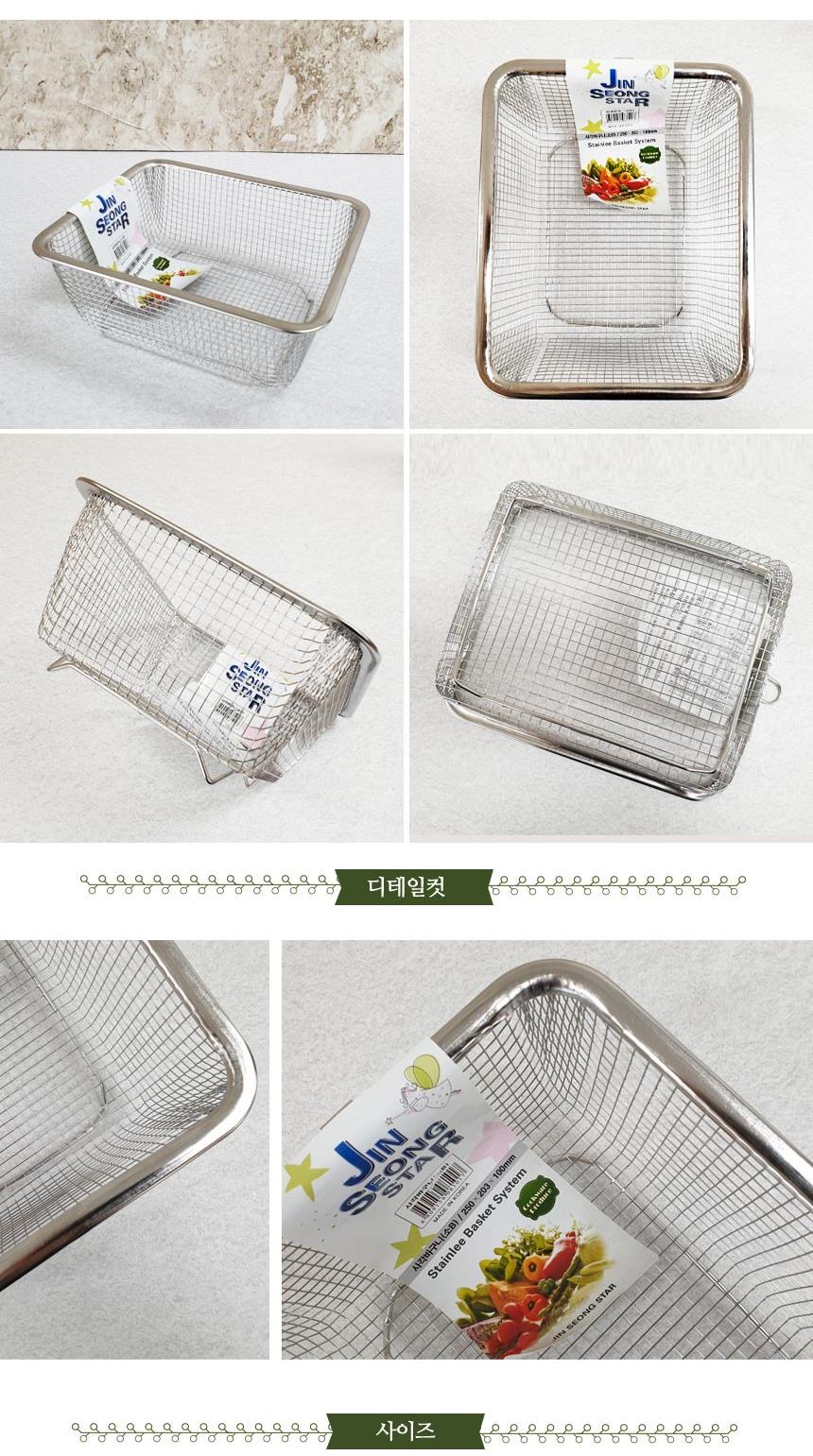 상품명:스텐 사각바구니 소 B형 굵은망 야채소쿠리 채반