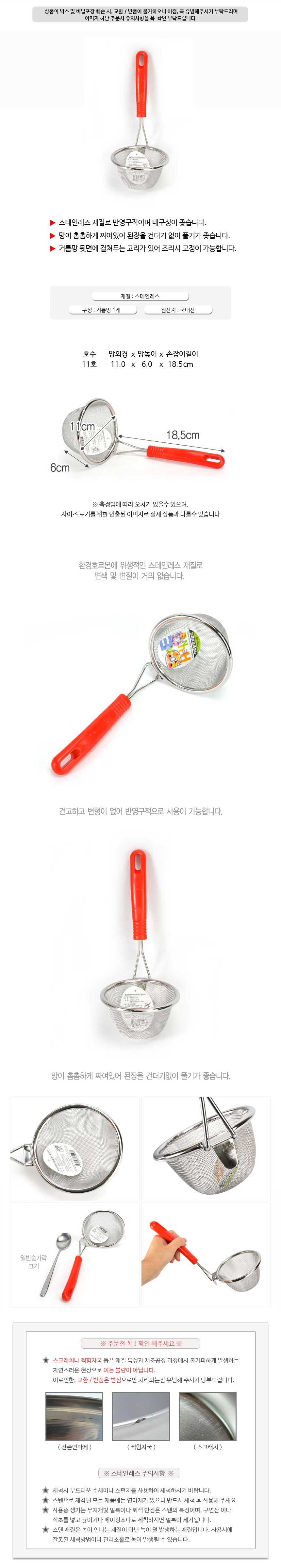 상품명:스텐 육수 다시 멸치망 거름망 채망 뜰채 건지기 11호