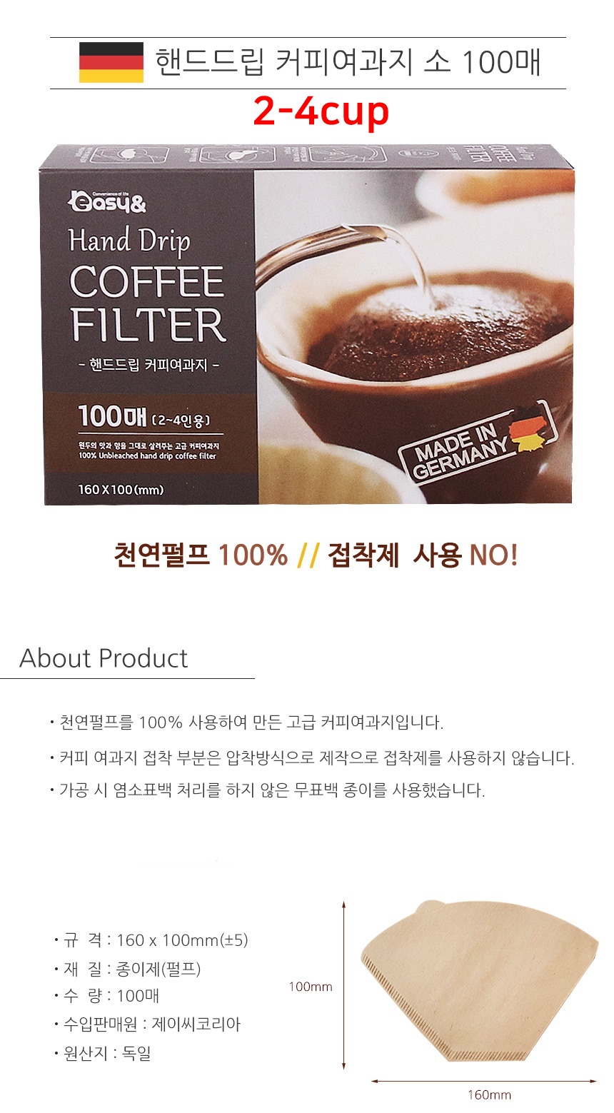 상품명:천연펄프 핸드드립 커피여과지 2-4인 100매 커피필터