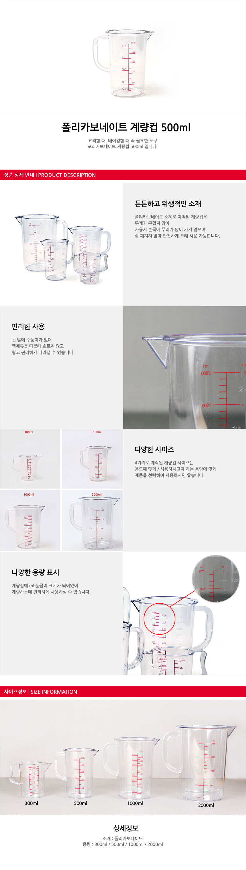 상품명:폴리카보네이트 베이킹용 손잡이 계량컵 비이커 500ml