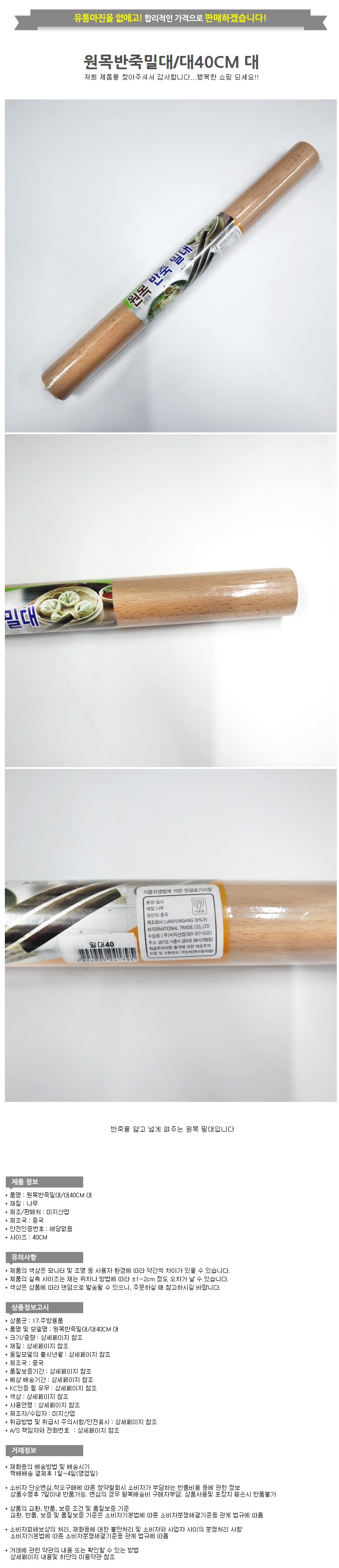 상품명:원목 반죽 밀대 대 40CM 만두피나무밀대 반죽밀대홍두