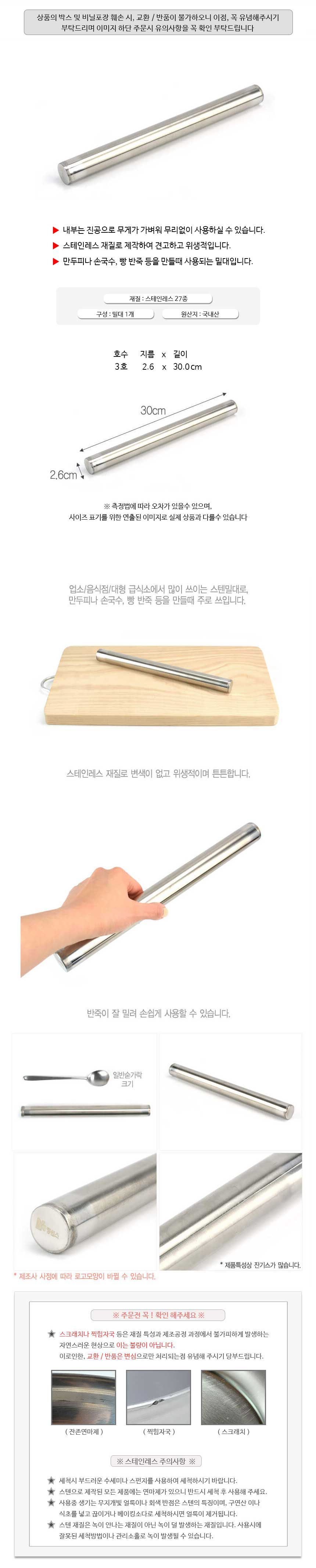 상품명:스텐 27종 반죽롤러 반죽밀대 30x2.6cm 3호