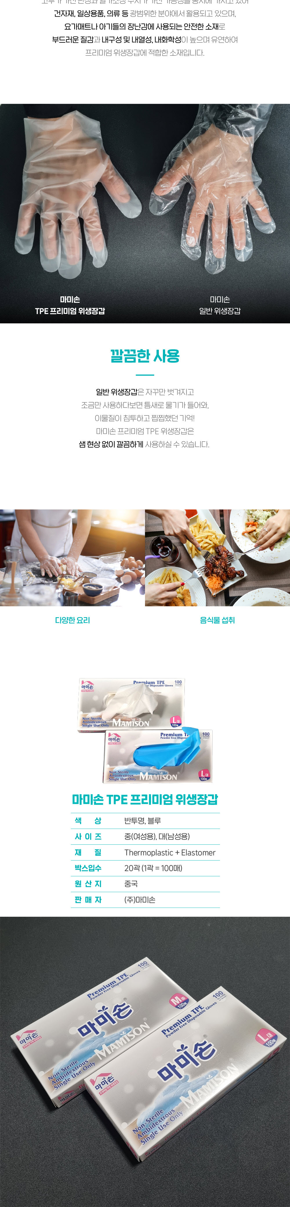 마미손 TPE 위생장갑 100매입위생장갑 비닐장갑 투명
