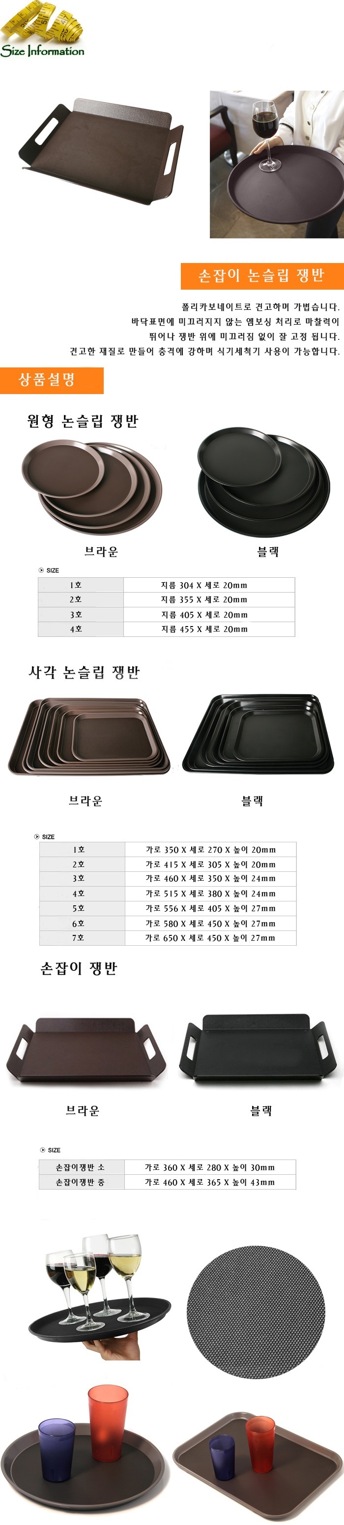 원형 논슬립 쟁반(브라운) 3호 논슬립쟁반