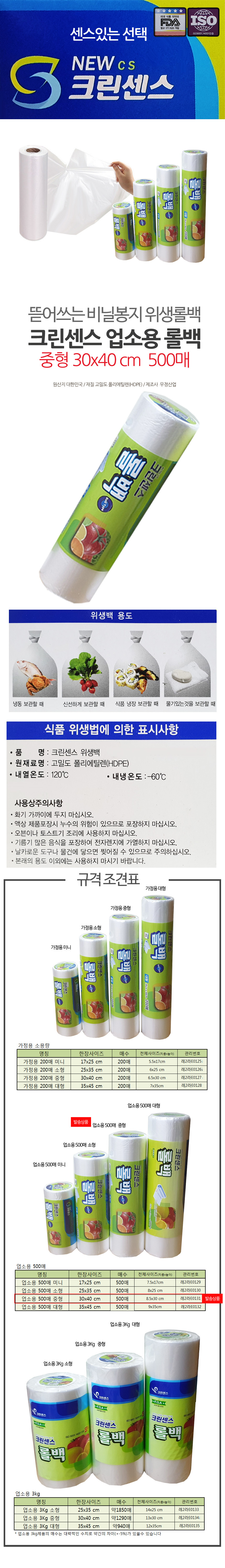 상품명:식당 업소용 롤비닐 위생롤백 중형 500매 가정용 주방