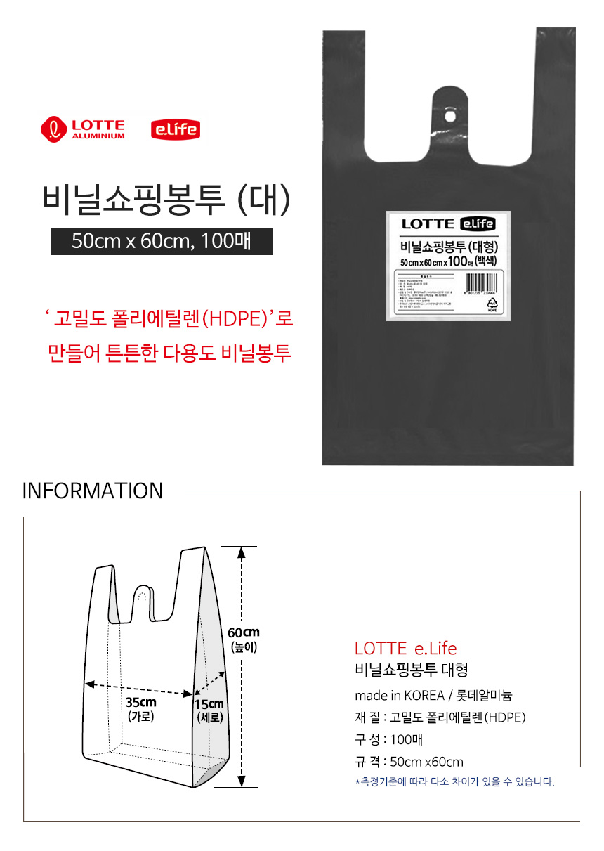 상품명:비닐봉투 대형 100매 검정 1P 쇼핑 비닐백 비닐봉지