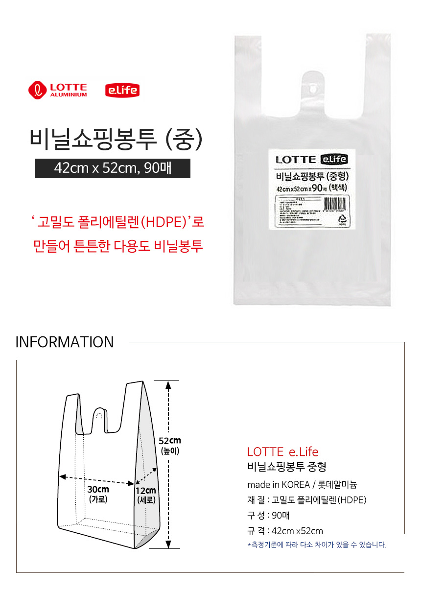 비닐봉투 중형 90매 화이트 1P 쇼핑 비닐백 비닐봉지
