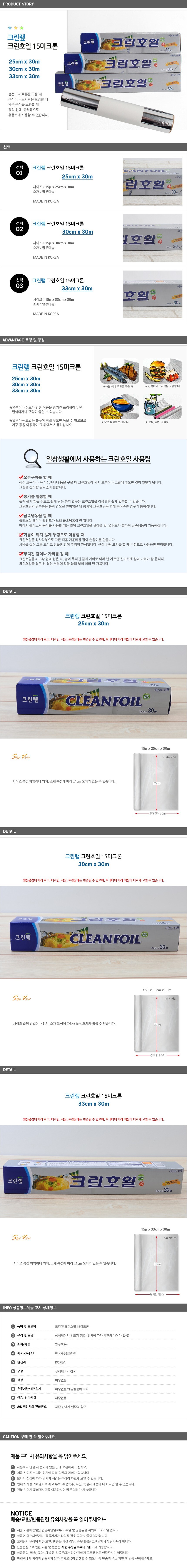 상품명:크린랩 크린호일 25/30/33cm 30M 알루미늄 쿠킹호일