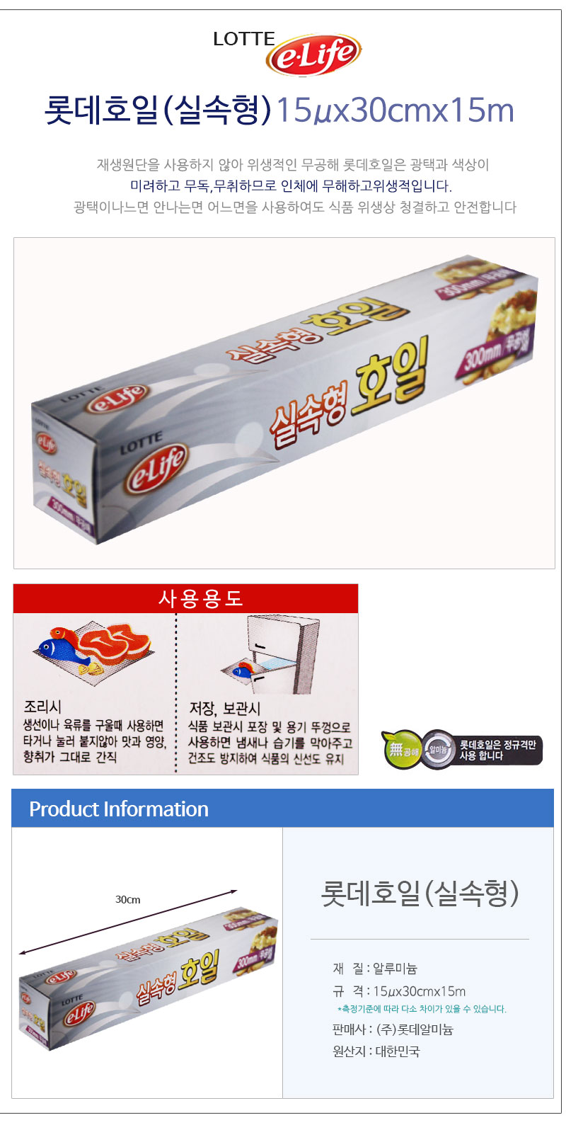 상품명:롯데 실속형 주방호일 30cmx15m 1P 알루미늄 쿠킹호일