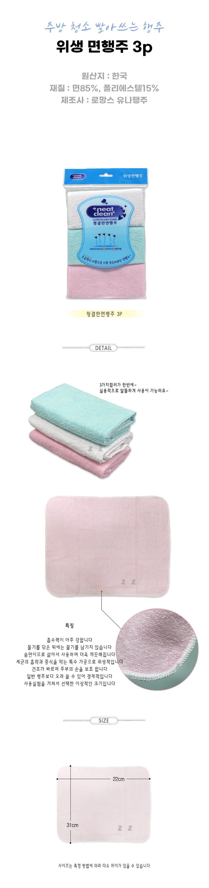 상품명:위생 면행주 3p 주방 청소 빨아쓰는 행주