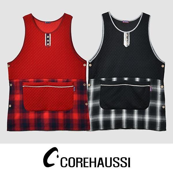 누빔 체크무늬 앞 포켓 앞치마 0026bv
