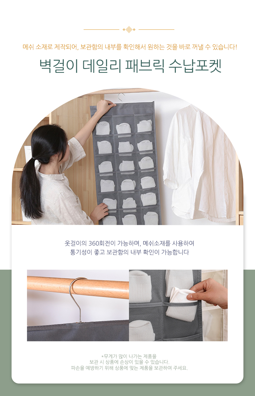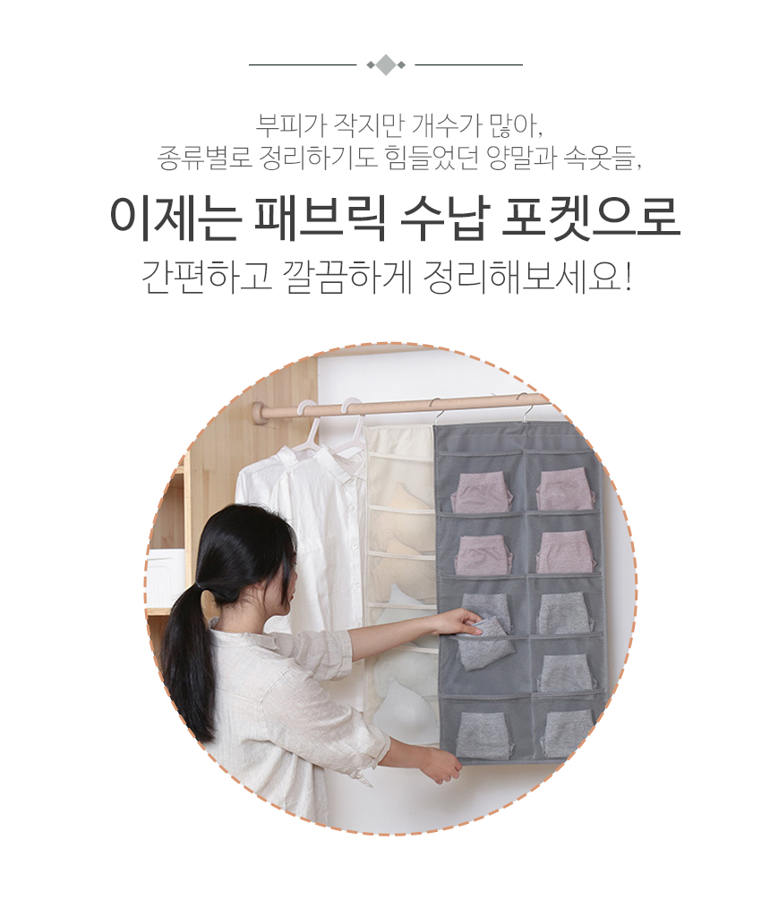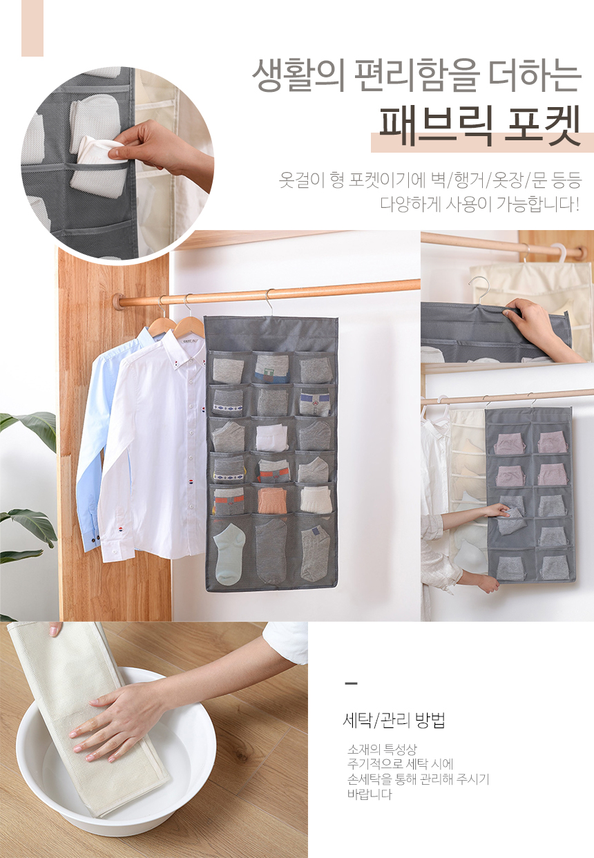 벽걸이 데일리 패브릭 옷장수납포켓 브래지어속옷보관